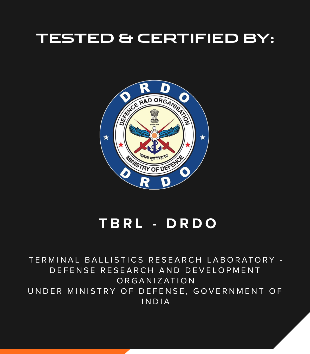 The Bomb Suppression Blankets are Ballistically Test Approved by the Govt. of India, Ministry of Defence, Terminal Ballistic Research Laboratory (TBRL) under DRDO.