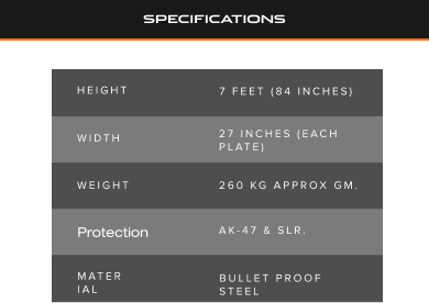 The Bullet Proof Sentry Post consists of three plates joined together with hinges. It can be used as picket for Sentry. Specifically in the border area of insurgency where the terrorist activities are more, it can be erected or dismantled in a very short period.